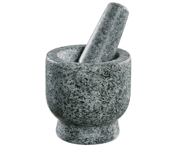 This handsome, heavy duty mortar and pestle set efficiently grinds fresh or dry herbs and spices, and is an invaluable tool for any kitchen. The mortar is made from a beautiful single piece of natural granite and will complement kitchen counter-tops and any home decor, from classic to modern.