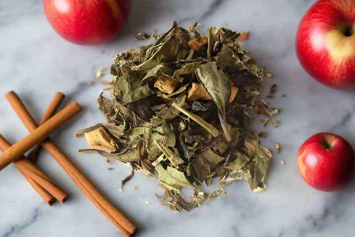 The sweet notes of pear and apple, the warmth of cinnamon, and delicate white tea combine to be the perfect cup for your next apple-picking outing.
