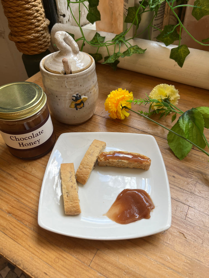 Indulge with your sweet tooth with this creamy mix of raw domestic clover honey and rich dark cocoa. Its smooth, spreadable texture makes it a wonderful treat on toast, waffles, biscotti, fruit, and more. Swirl some chocolate honey into yogurt or oatmeal, or mix into your favorite tea for an extra sweet note.