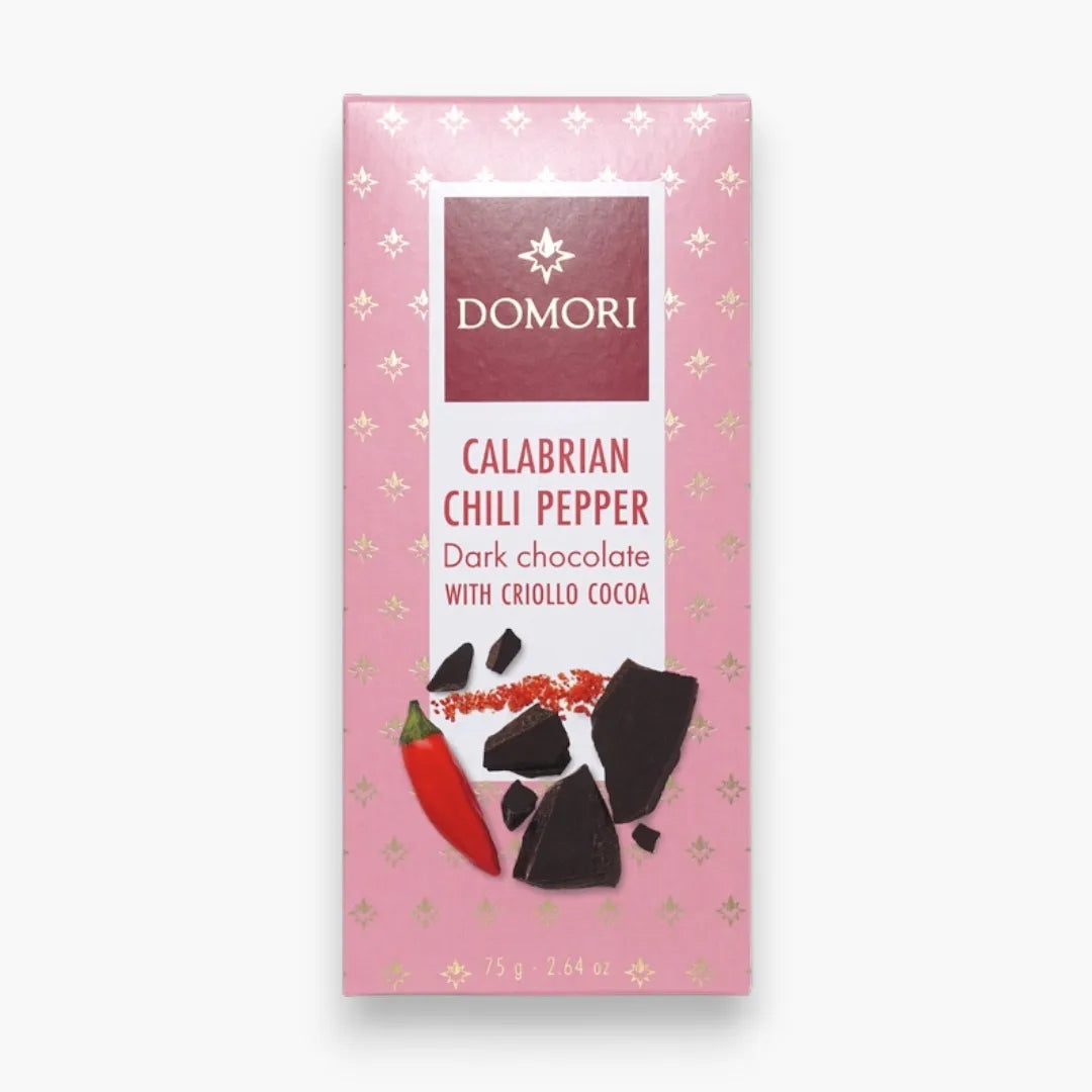 Experience the pinnacle of chocolate craftsmanship with Domori's Dark Chocolate infused with Calabrian chilli. This 70% cacao creation showcases the world's most coveted Criollo beans, renowned for their exceptional aromatic depth and complexity. The carefully balanced heat from Calabrian chili amplifies the chocolate's natural flavor profile, revealing layers of sophistication that demand to be savored.