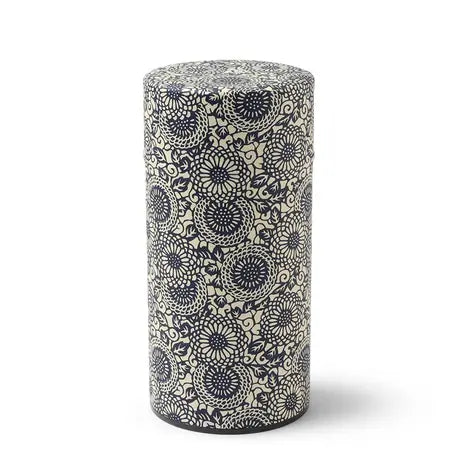 This beautiful and delicate tea canister is constructed of food safe aluminum and hand wrapped washi paper. Designed of delicate antique marigold flowers (manjugiku) to accentuate your tea collection.