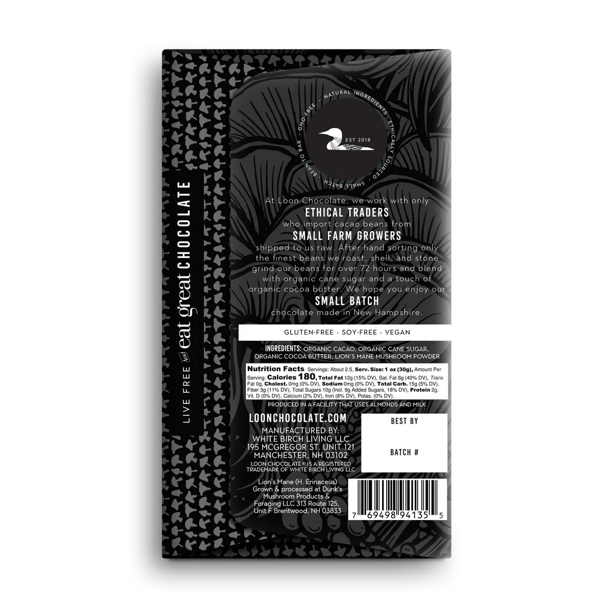 Loon Chocolate - Lion’s Mane Dark Chocolate