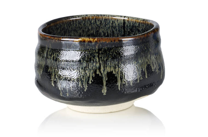 This handsome black chawan is handmade in Shizouka, Japan. The dark colors and natural silhouettes represent the mysterious slopes and rigid peaks of dormant volcanoes. Enjoy your daily matcha in absolute style.
