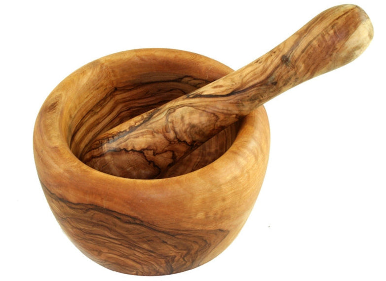 Enhance your daily culinary routine with this beautiful and functional olive wood mortar and pestle, handcrafted in Germany. each set is unique and Its elegant design complements any kitchen, while the sturdy olive wood ensures durability and effective grinding of herbs and spices, bringing fresh, vibrant flavors to your dishes with ease.