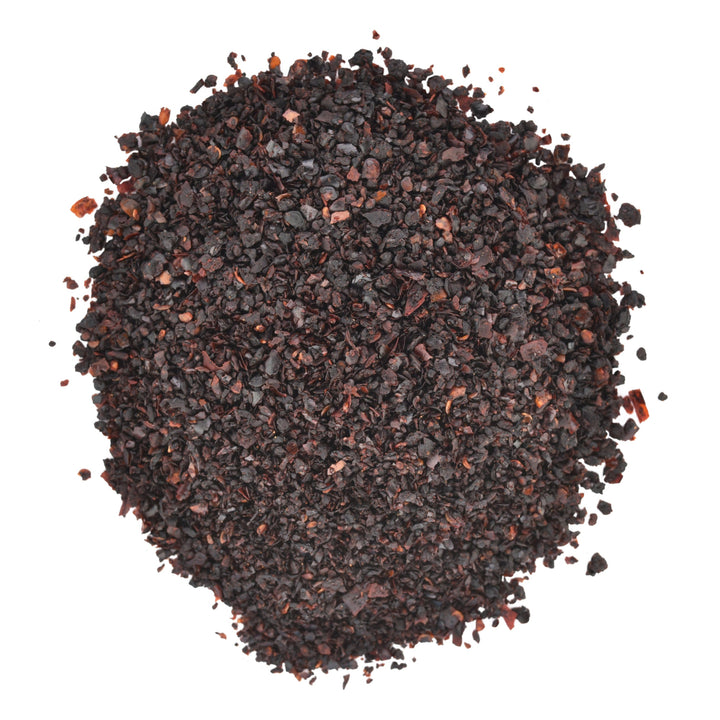 Smokey with a slight raisin-like flavor, Urfa Biber is a type of Turkish red chili pepper. Allowed to ripen on the plant until a rich maroon, these chilis are then dried in the sun during the day and wrapped at night, to help retain their moisture.